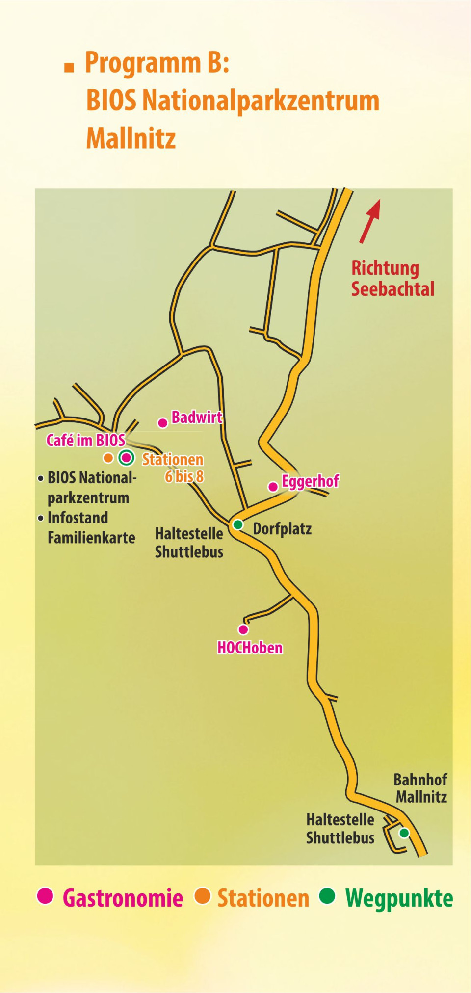 Bahnhof über Dorfplatz zum Seebachtal/Ankogelparkplatz: