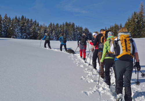 Die verschneite Winterlandschaft bietet einzigartige Möglichkeiten für Bewegung und Naturerlebnis abseits von Pisten und abgesicherten Räumen. Schneeschuhwandern ist eine naturnahe und relativ leicht erlernbare Form des Wintersports. Doch wer sich im alpinen Gelände bewegt, sollte wissen, wie man sich sicher verhält und auf was es aufzupassen gilt.