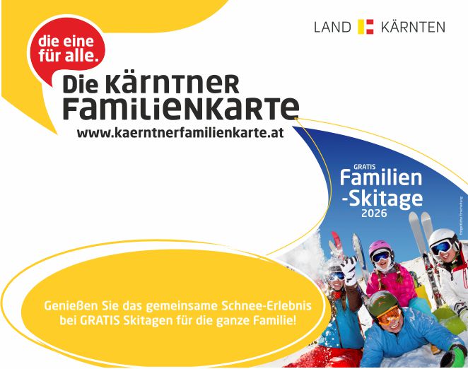 Die Skikarten werden nur in Verbindung mit der Kärntner Familienkarte und bei Anwesenheit mindestens eines Kindes ausgegeben.