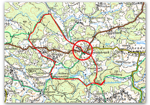 Route: von Pretrobruck zum Höllenfall- Gemeindebühel- Brunnmühle-Lohnbachfall- Pretrobruck