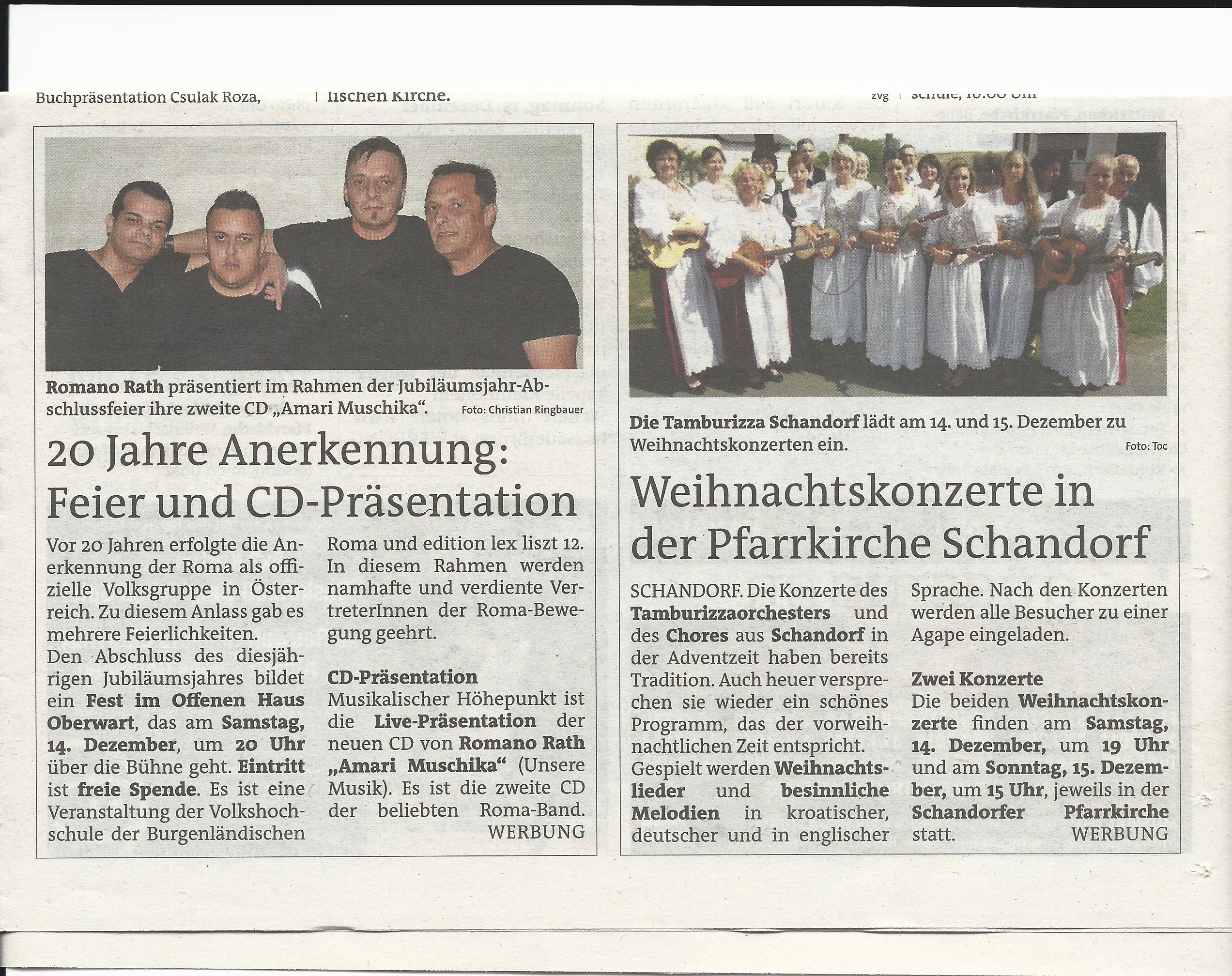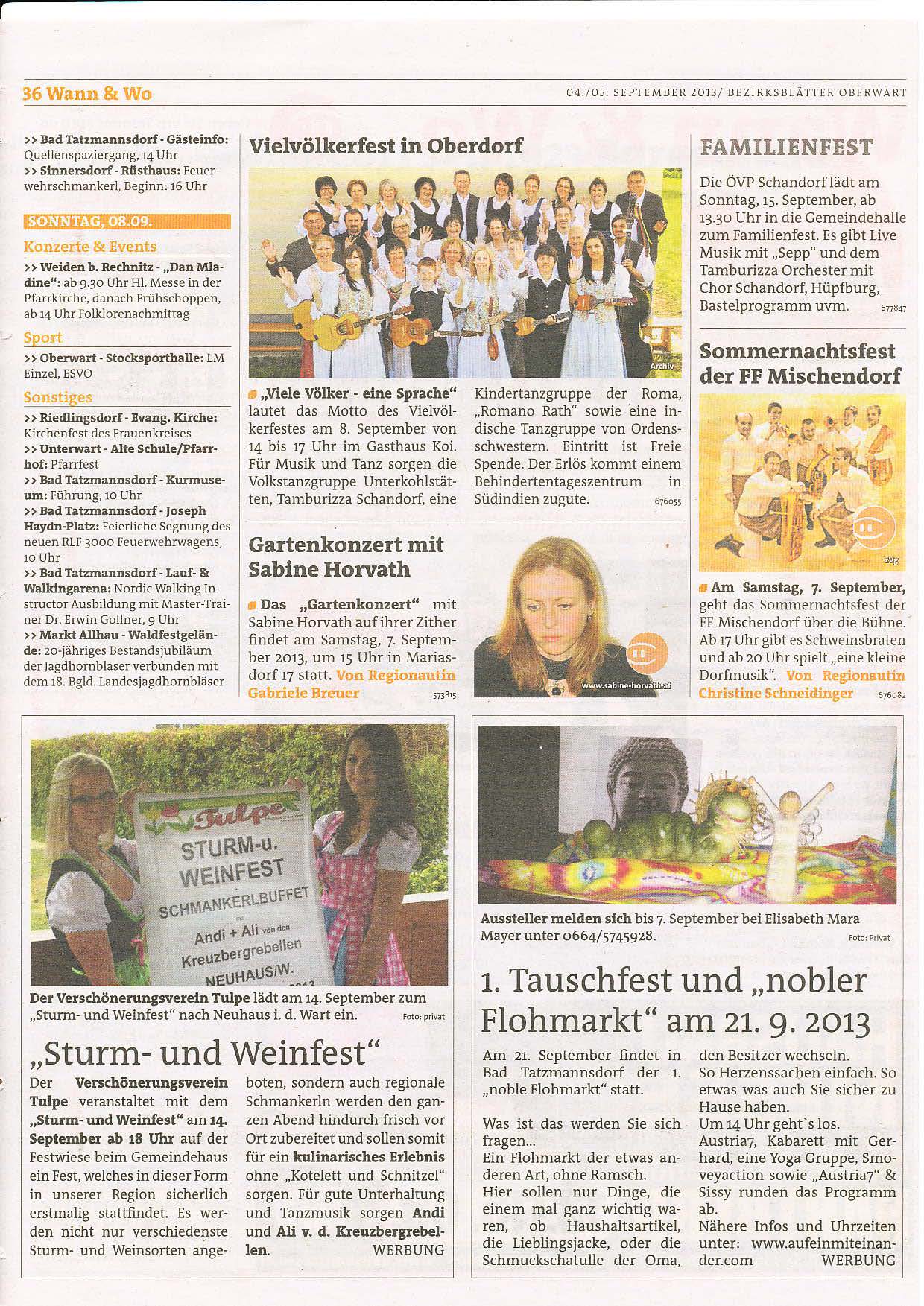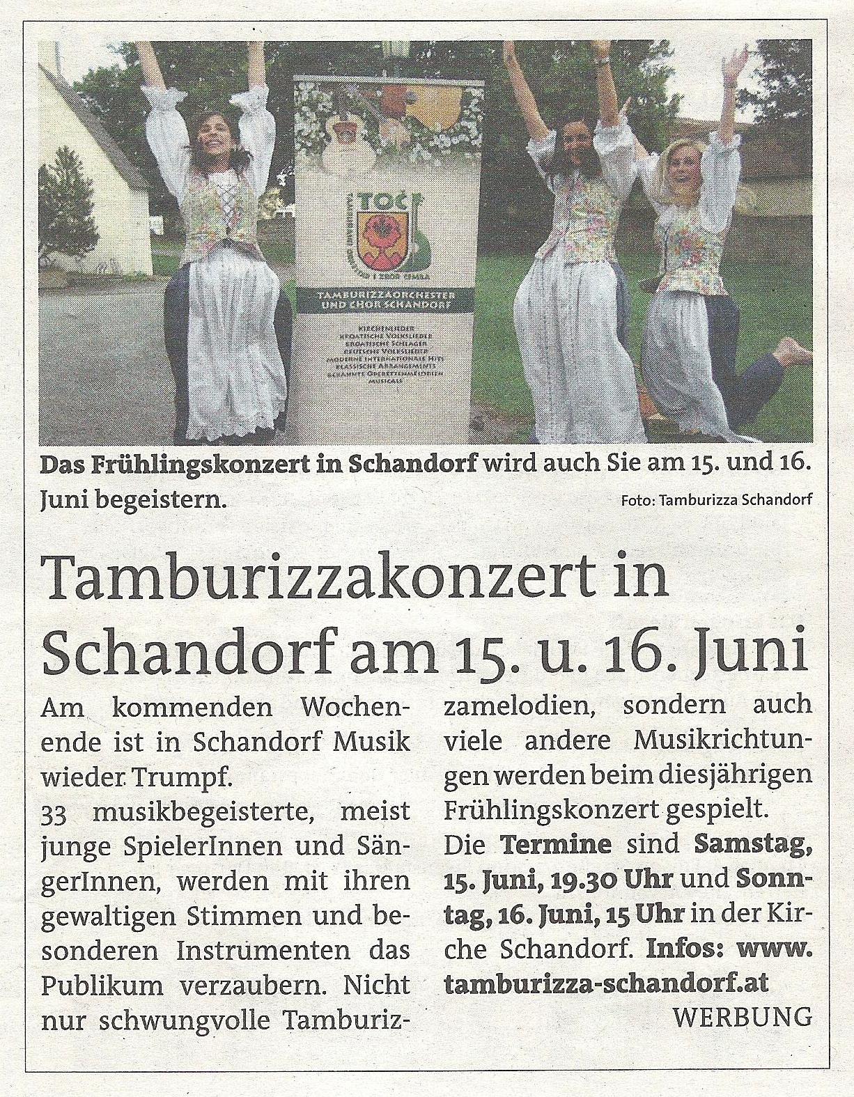 Ankündigung der Frühlingskonzerte in den Bezirksblättern Oberwart (21./22. Mai 2014)