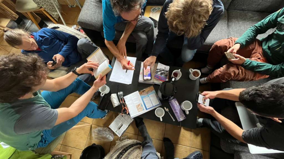 Am ersten Tag standen die Vorbereitungen für die große Abschlussexpedition im Fokus, unter der Vorgabe, dass es keine Flugreise geben darf. Die Anreise nach Marokko muss gut geplant werden, um möglichst kurz und ressourcenschonend unterwegs zu sein Außerdem wurden die Expeditionsziele festgelegt und eine laaange Ausrüstungsliste erstellt. Schnell wurde klar, dass sie sich auf das nötigste Material beschränken müssen, denn getragen wird selbst!