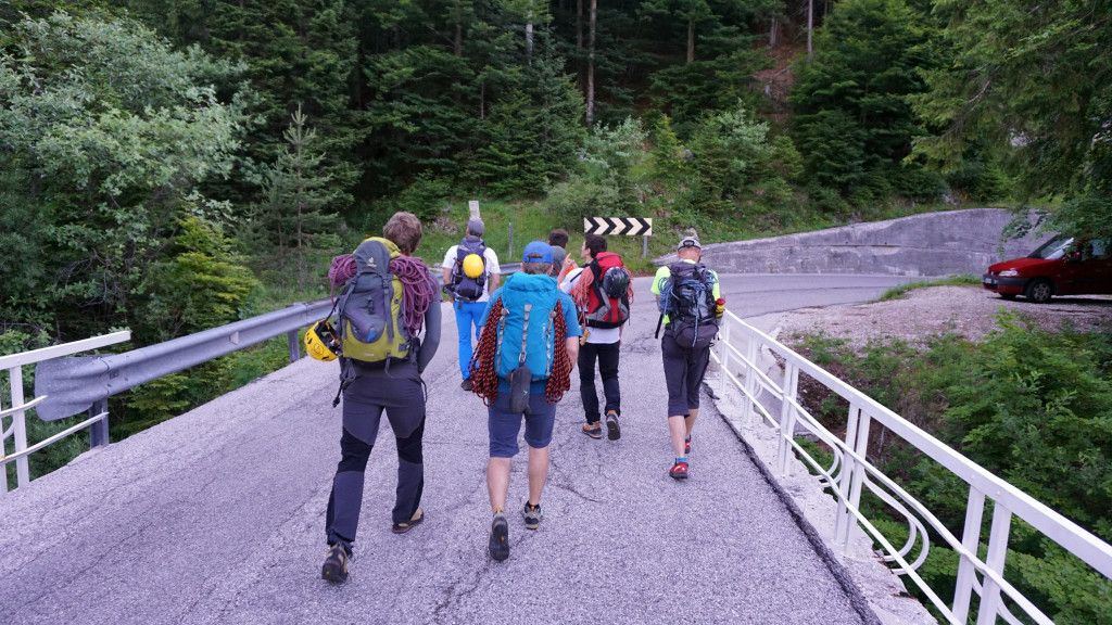 Unser Treffpunkt war die italienischen Grenze in Thörl Maglern. Danach fuhren wir gemeinsam weiter zum Lago del Predil wo der Ausgangspunkt unserer Toru war. Der Zustieg führte entlang des Weißenbachs zur Brunner Hütte.