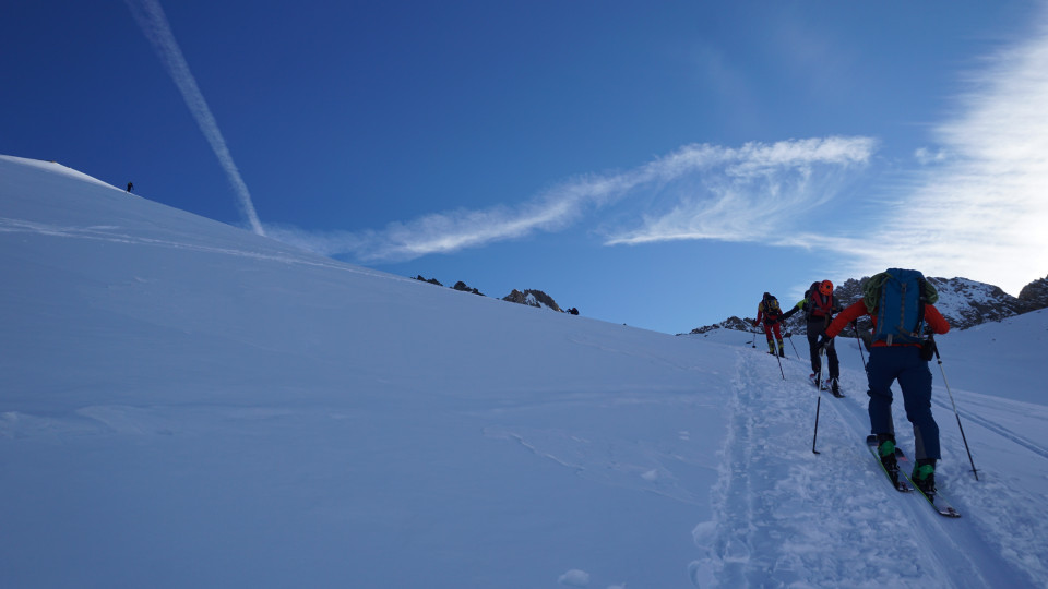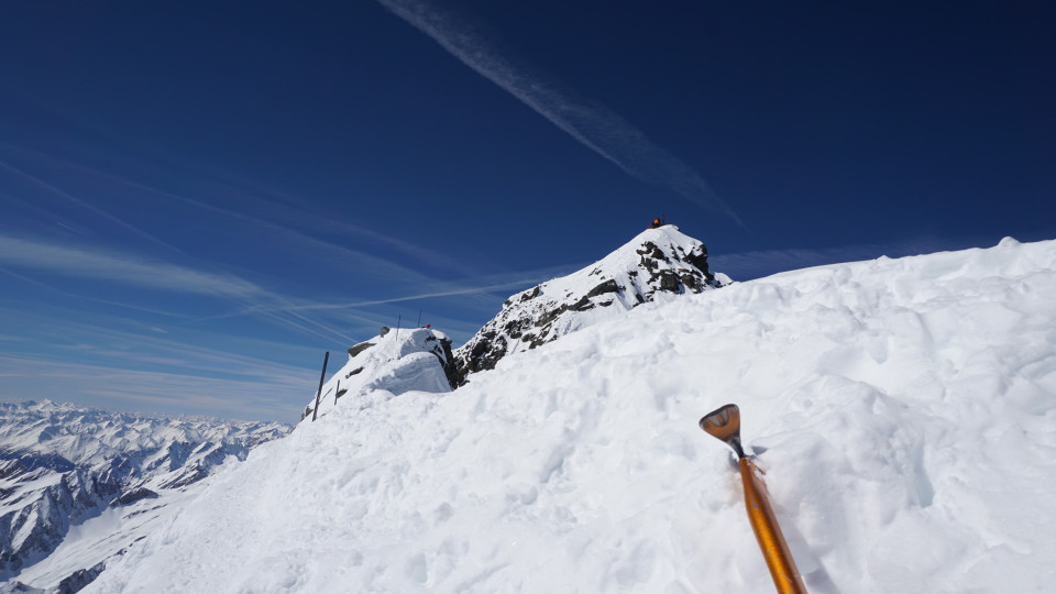 Am Kleinglockner hängte ich mich wider dazu und stiegen rasch zu unseren Skidepot ab.