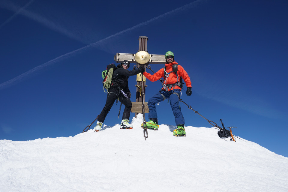 Nur noch zu zweit ging es auf zum Gipfel, der nach insgesamt ca. 5,5 Stunden erreicht wurde. Jedoch müssten sie viel Zeit am Rückweg zum Kleinglockner einbüßen. Da sich die vier Seilschaften noch immer zwischen Großglockner und Kleinglockner befanden, dauerte dieser Weg ca. eineinhalb Stunden.