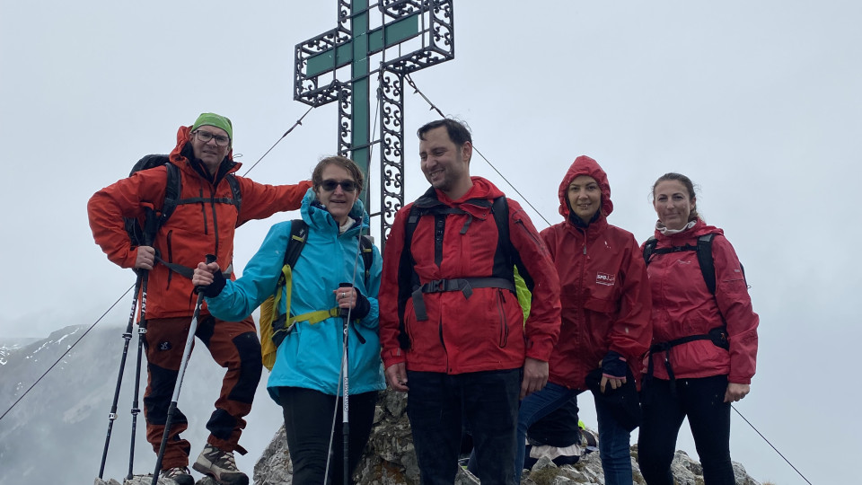 Das Knofelebenhaus der Wiener Naturfreunde wurde heuer 100 Jahre alt. Daher fand dort der Wiener Naturfreundetag statt. Viele Wiener Gruppen führten rauf, es gab sogar einen Sonderzug (Salamander der Schneebergbahn). Die Tour der Naturfreunde Landstraße war wie üblich die anspruchvollste: 1200hm 20,5 Kilometer. Über Bodewiese, Krumbachalpl und Krumbachstein führte der Weg. Das am Gipfel das Wetter schlechter war hat die gute Stimmung nicht getrübt.