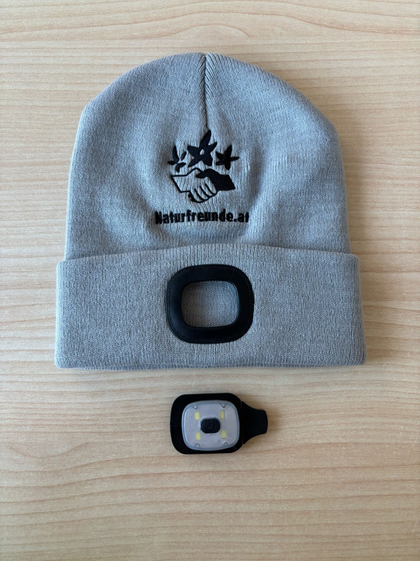 Wiederaufladbare und Herausnehmbare COB-LED Leuchte.Mit Stick (Logo Naturfreunde) auf der Vorderseite.